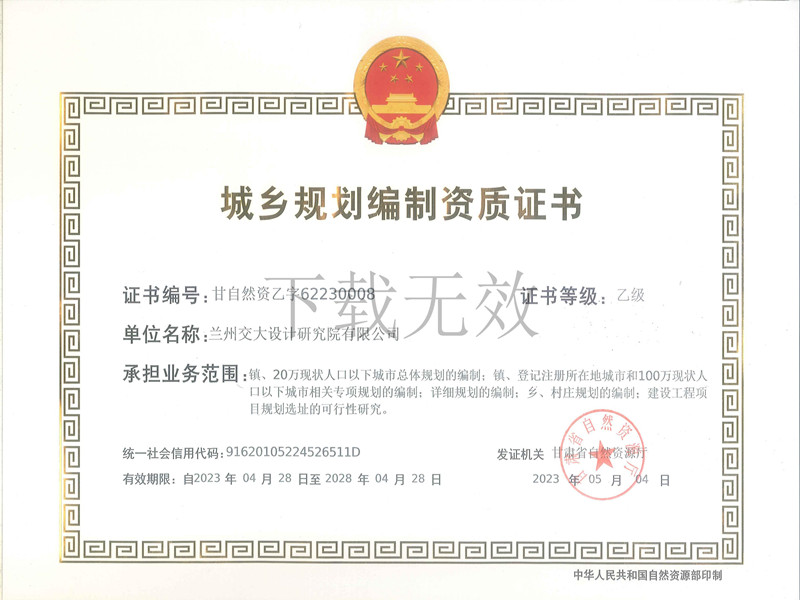 城鄉(xiāng)規(guī)劃編制資質(zhì)證書