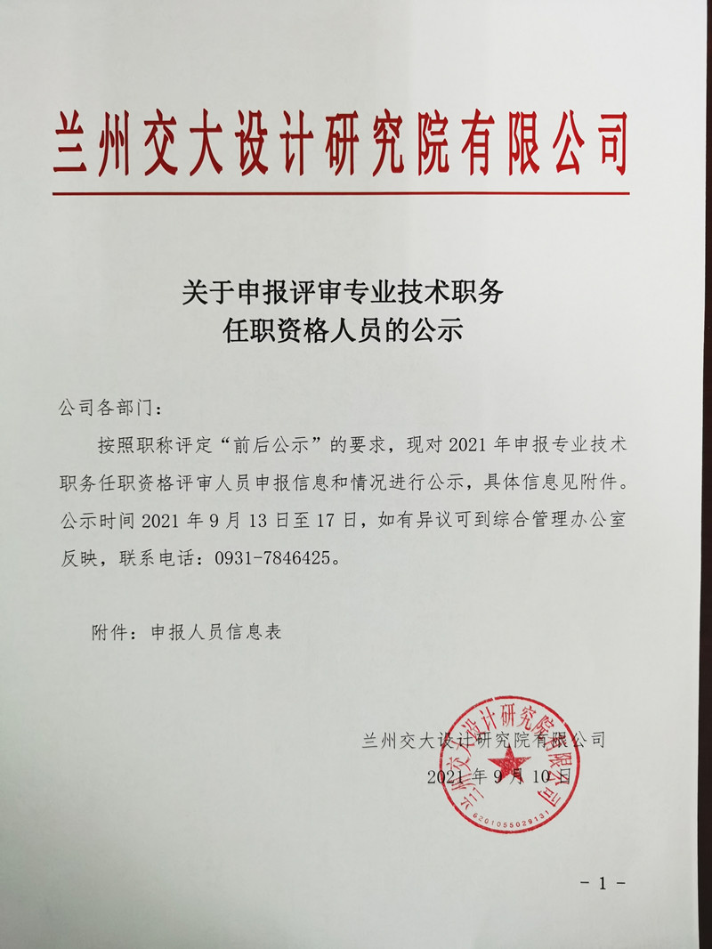 關(guān)于申報(bào)評(píng)審專業(yè)技術(shù)職務(wù)任職資格人員的公示